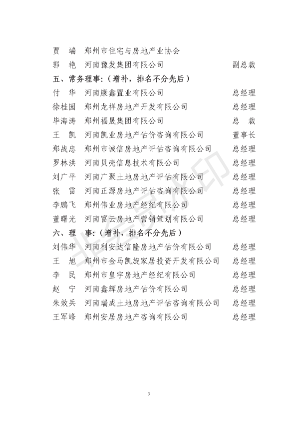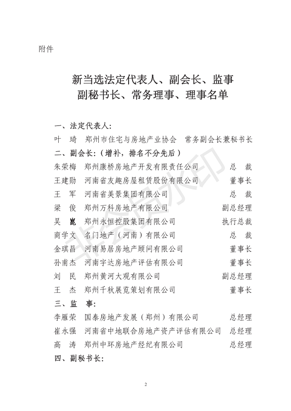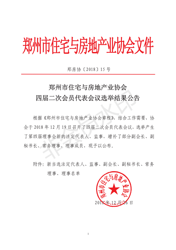 郑州市住宅与房地产业协会四届二次会员代表会议选举结果公告